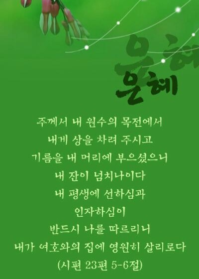 | 오늘의 말씀(믿음은 주 하나님의 말씀에 順從하는 것입니다) (0) | 2023.12.07 |